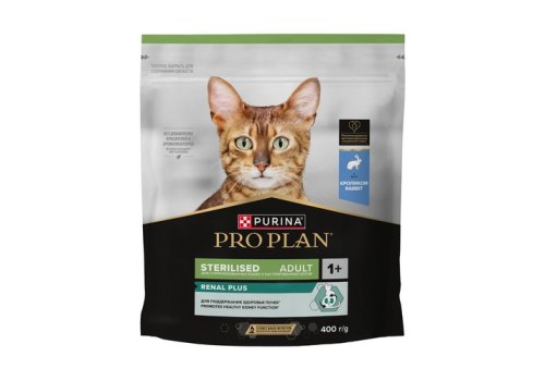 PRO PLAN STERILISED Сухой корм ПРО ПЛАН для взрослых кошек для поддержания здоровья почек после стерилизации с кроликом 400 г