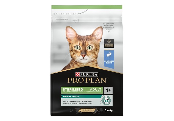 Корм сухой для кошек PRO PLAN® Sterilised RENAL PLUS (Поддержание здоровья почек) — это полюбившийся PRO PLAN® Sterilised OptiRenal с новым названием, но прежним составом и качеством.