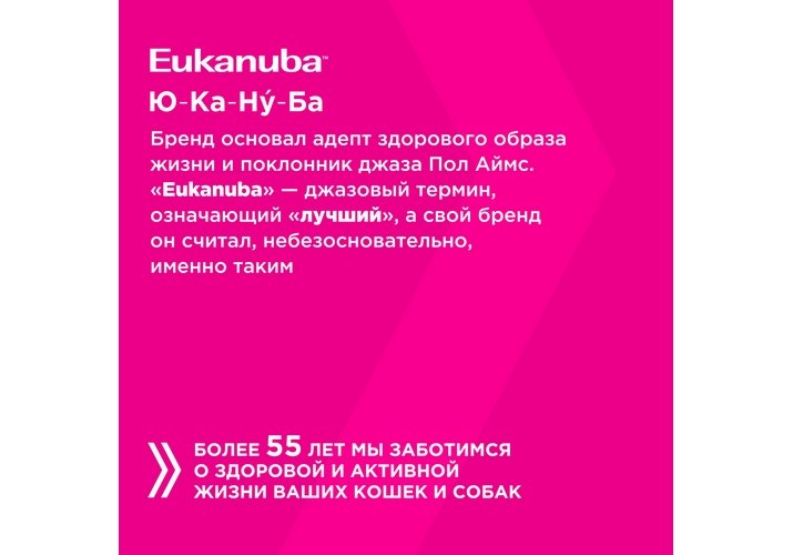 Eukanuba заботится о том, чтобы каждый питомец мог максимально раскрыть свой природный потенциал и оставался на пике формы каждый день!