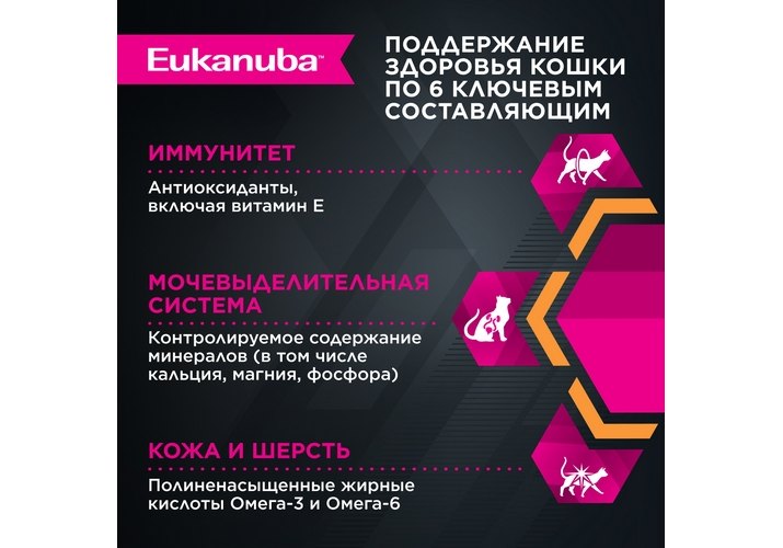 На 100% сбалансированный корм, поддерживает здоровье кошки по шести ключевым признакам и обеспечивает отличную физическую форму.