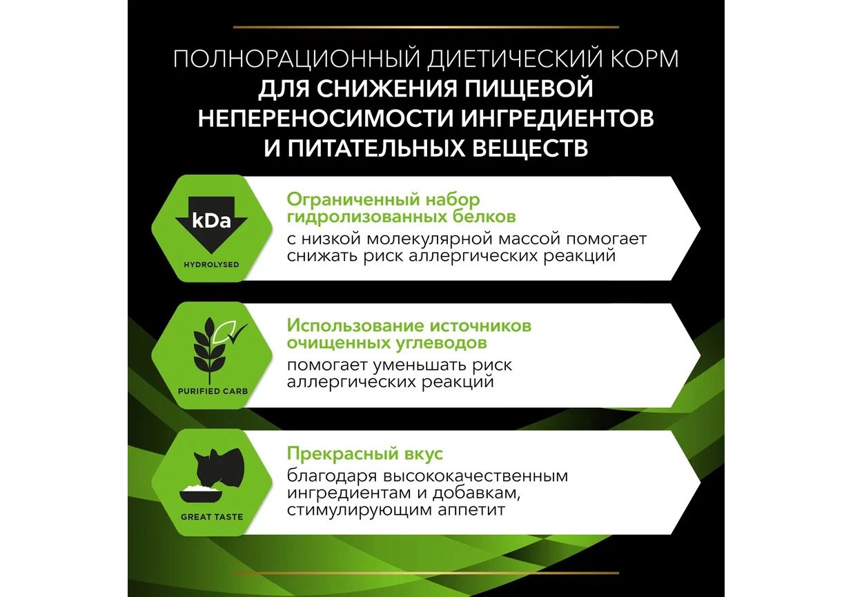 Корм сухой полнорационный диетический PRO PLAN® Veterinary Diets HA St/Ox Hypoallergenic (Гипоаллергеник) для котят и взрослых кошек для снижения пищевой непереносимости ингредиентов и питательных веществ, на основе источников гидролизованного белка, отобранных источников углеводов и комбинации необходимых питательных характеристик. Использование данного корма рекомендовано под наблюдением ветеринарного врача.
