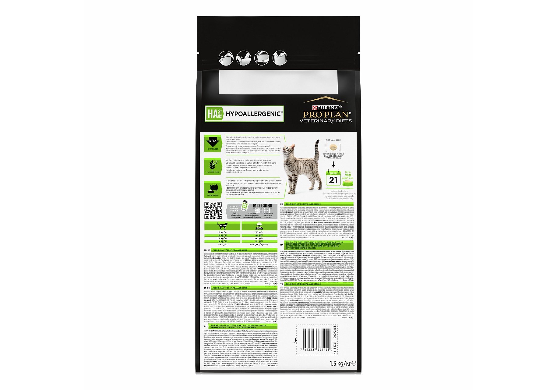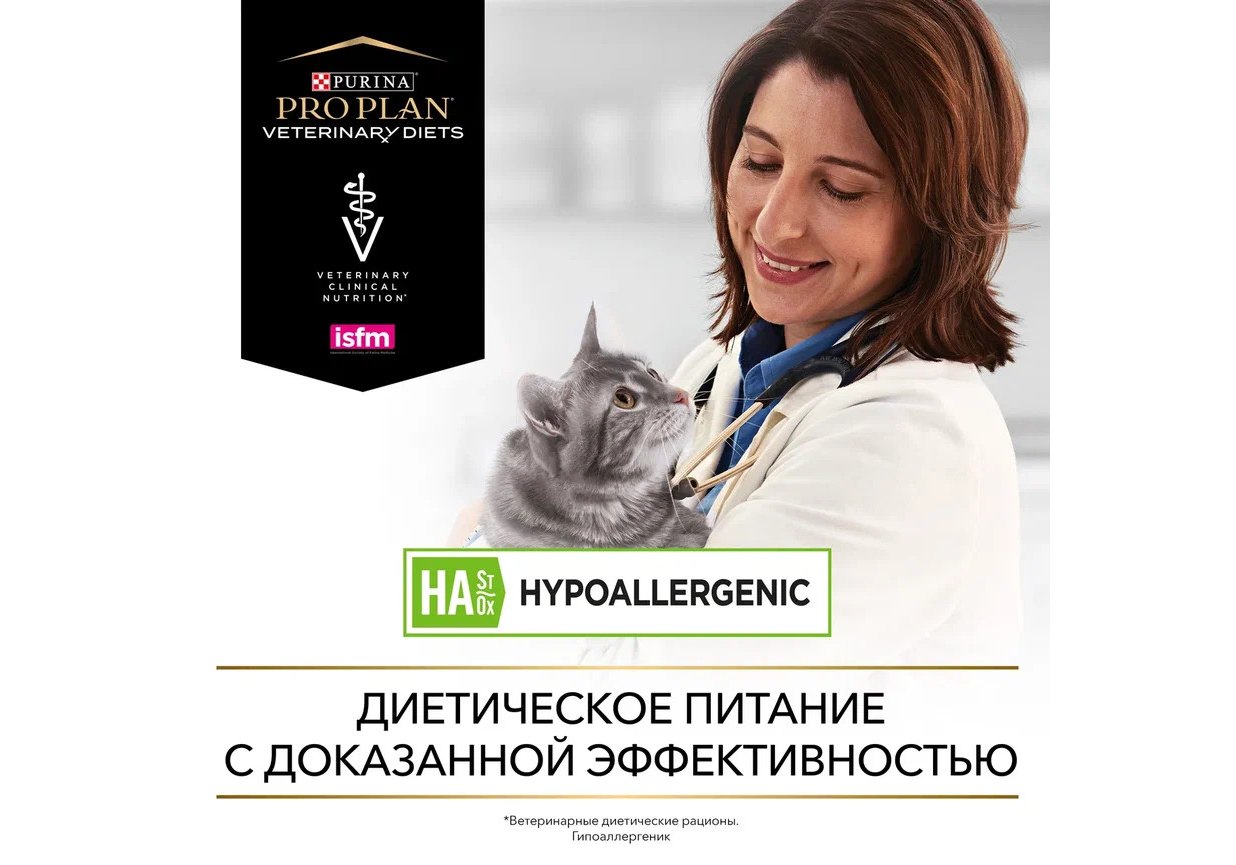 PRO PLAN VETERINARY DIETS HA ST\OX HYPOALLERGENIC Сухой корм ПРО ПЛАН Ветеринарная диета для котят и взрослых кошек для снижения пищевой непереносимости ингредиентов и питательных веществ 1,3 кг