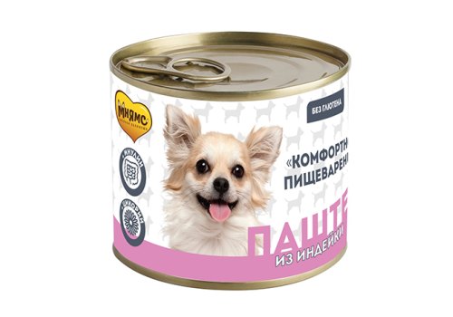 Мнямс Комфортное Пищеварение Влажный корм Консервы для собак всех пород Паштет из Индейки (цена за упаковку) 200г х 12шт