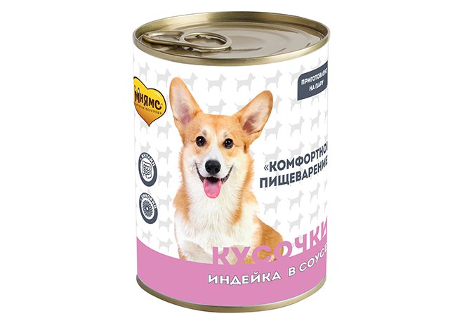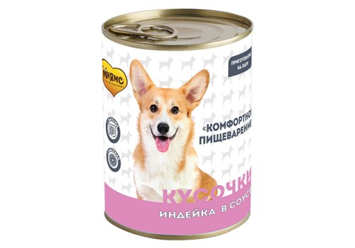 Мнямс Комфортное Пищеварение Влажный корм Консервы для собак всех пород Кусочки в соусе с Индейкой (цена за упаковку) 400г х 12шт