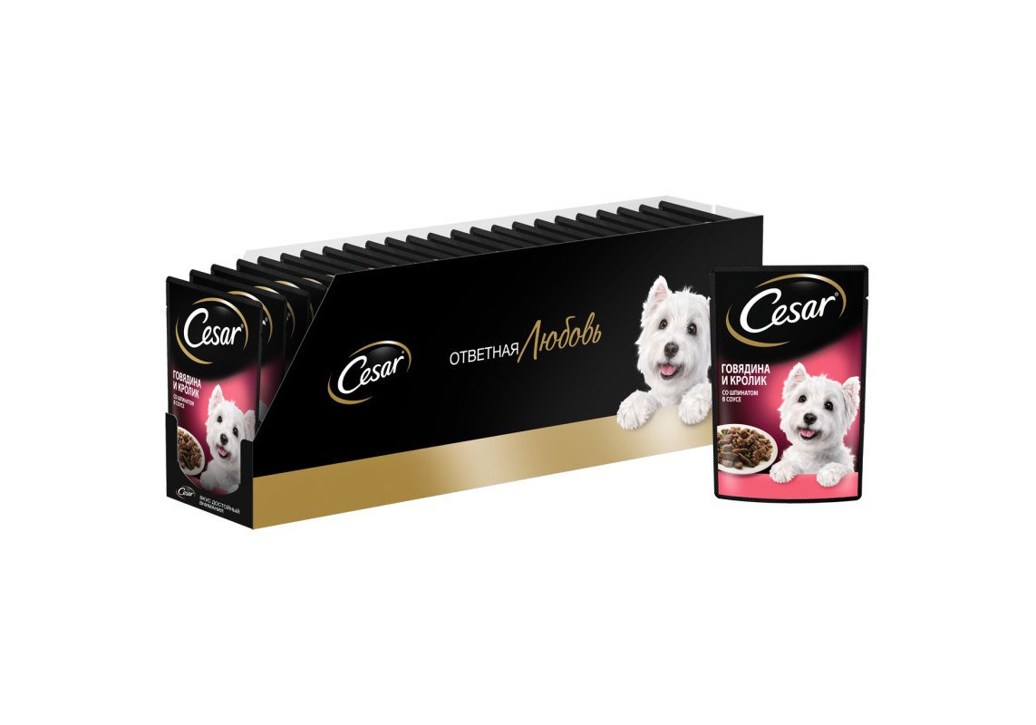 Секрет неповторимых вкусов CESAR® — в изысканном сочетании сочного мяса и отборных овощей. CESAR® — это не только полнорационный продукт для ежедневного кормления, но и прекрасный способ порадовать того, кто вам бесконечно предан.