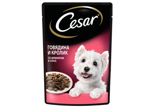 Cesar Паучи Цезарь для собак Говядина Кролик Шпинат (цена за упаковку) 85г х 28шт