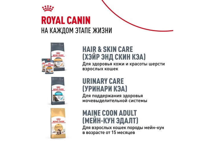 Для удовлетворения индивидуальных предпочтений каждого животного ROYAL CANIN® Maine Coon Kitten выпускается также в форме влажного продукта в виде кусочков в соусе. Если Вы выбрали для своего котенка смешанное питание, следуйте нашим рекомендациям в рационных таблицах: это позволит смешивать сухой и влажный продукт в пропорциях, оптимальных для здоровья котенка.