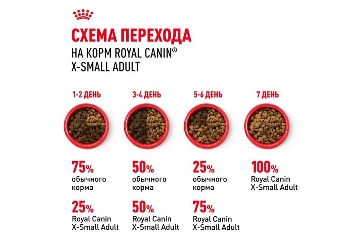 Корм сухой полнорационный для взрослых собак (старше 10 месяцев) очень мелких размеров (весом до 4 кг) X-SMALL ADULT (ИКС-СМОЛ ЭДАЛТ) ROYAL CANIN®, подходящий для собак миниатюрных пород в возрасте от 10 месяцев до 8 лет, специально разработан с учетом потребностей вашей собаки в питательных веществах.