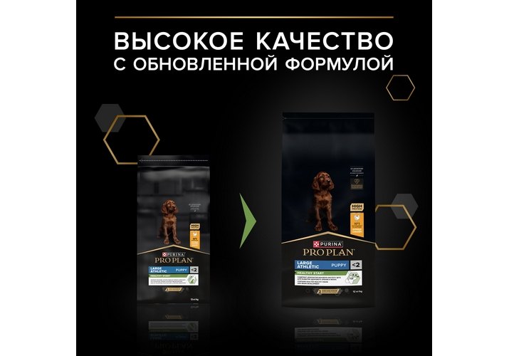 Изучая потребности щенков на протяжении многих лет, команда квалифицированных ветеринарных специалистов и диетологов PURINA разработала сухой корм PRO PLAN® Healthy start (здоровый старт) для щенков с 6 недель* — ежедневный рацион с высоким содержанием курицы для щенков крупных пород атлетического телосложения. Этот полнорационный корм сбалансирован по составу.