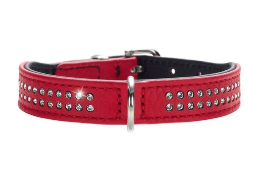 Hunter Diamond petit Ошейник Хантер для собак кожа 2 ряда страз 27 (20-24 см) Красный