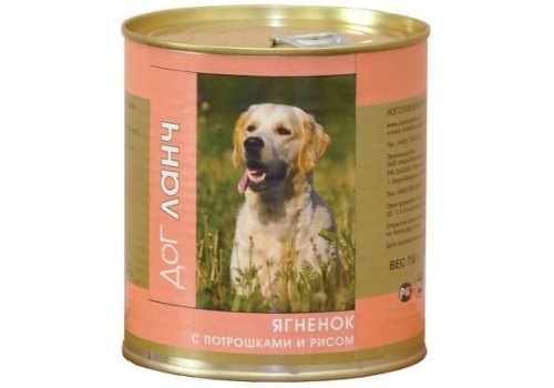 Dog Lunch Консервы ДогЛанч для взрослых собак Ягненок с потрошками и рисом в желе (цена за упаковку) 750г x 12шт