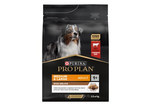 PRO PLAN DUO DELICE Сухой корм ПРО ПЛАН для взрослых собак средних и крупных пород с говядиной 2,5 кг