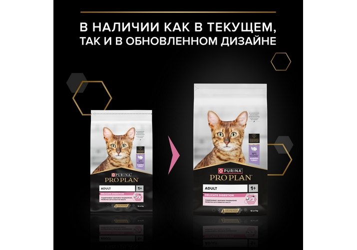 Корм сухой для кошек PRO PLAN® Adult DELICATE DIGESTION (Чувствительное пищеварение) — это полюбившийся PRO PLAN® Delicate OptiDigest с новым названием, но прежним составом и качеством.