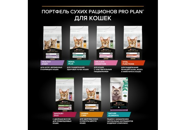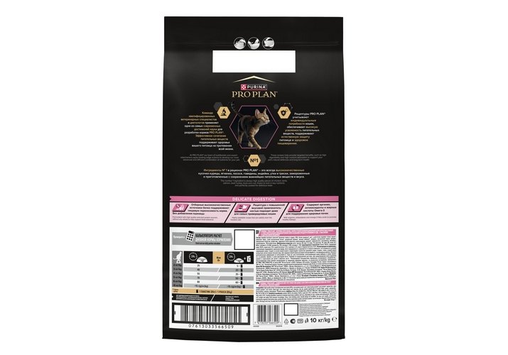 Команда квалифицированных ветеринарных специалистов и диетологов разработала для кошек сухой корм с индейкой PRO PLAN® Adult DELICATE DIGESTION. Этот сбалансированный полнорационный корм обладает легкоусвояемой формулой и подходит для повседневного кормления питомцев с проблемами пищеварения.