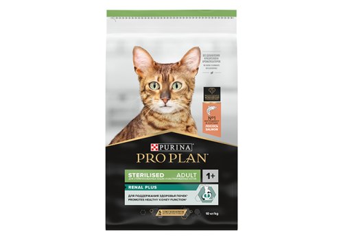 Корм сухой для кошек PRO PLAN® Sterilised RENAL PLUS (Поддержание здоровья почек) — это полюбившийся PRO PLAN® Sterilised OptiRenal с новым названием, но с прежним составом и качеством.