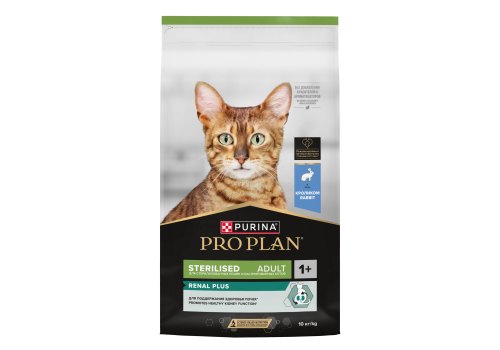 PRO PLAN STERILISED Сухой корм ПРО ПЛАН для взрослых кошек для поддержания здоровья почек после стерилизации с кроликом 10 кг