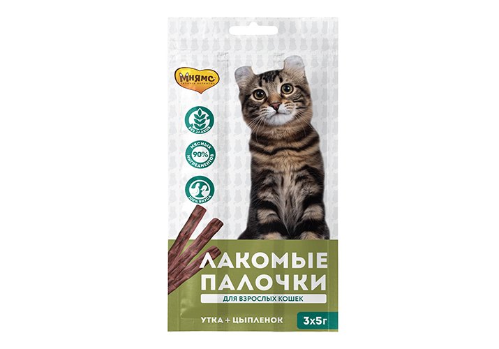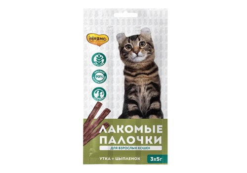 Мнямс Лакомство для кошек Лакомые палочки 13,5 см Цыпленок и Утка 5г х 3шт
