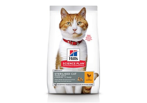 Стерилизованные кошки или кастрированные коты, склонны к набору избыточного веса, поскольку у них увеличивается аппетит и снижается активность. Также у них увеличивается вероятность возникновения проблем с функциями почек и мочевого пузыря. Сухой корм для молодых стерилизованных кошек и кастрированных котов, с курицей HILL'S SCIENCE PLAN Sterilised Cat содержит уникальную формулу контроля веса, поддерживающую идеальный вес, а также сбалансированный набор минералов для поддержания здоровья функций почек и мочевого пузыря.