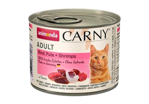 Animonda Carny Adult Консервы Анимонда для кошек с Говядиной Индейкой и Креветками (цена за упаковку) 200г x 6шт