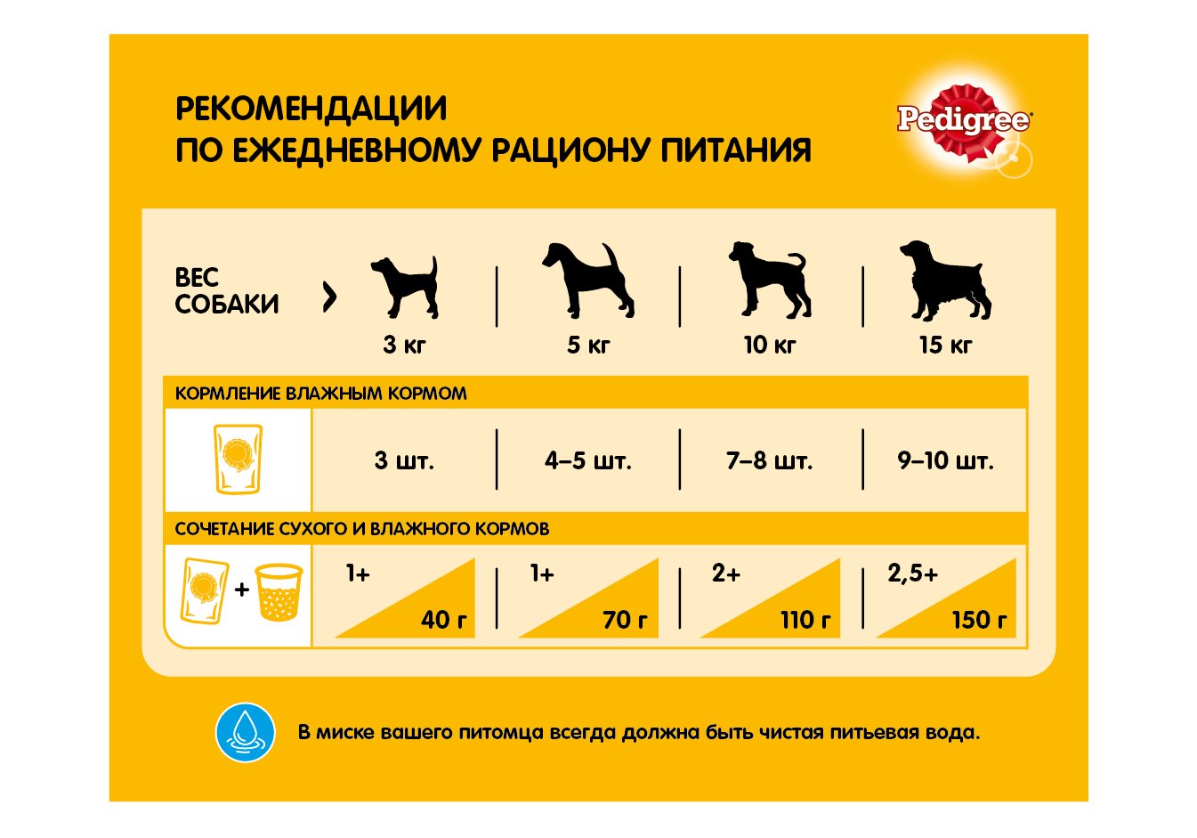 Pedigree® рекомендует сочетать разные форматы корма в рационе взрослых собак крупных пород. Сочетание сухих и влажных рационов PEDIGREE® — залог оптимального питания. Такое сочетание позволит удовлетворить естественные предпочтения Вашей любимицы и повысить привлекательность питания.