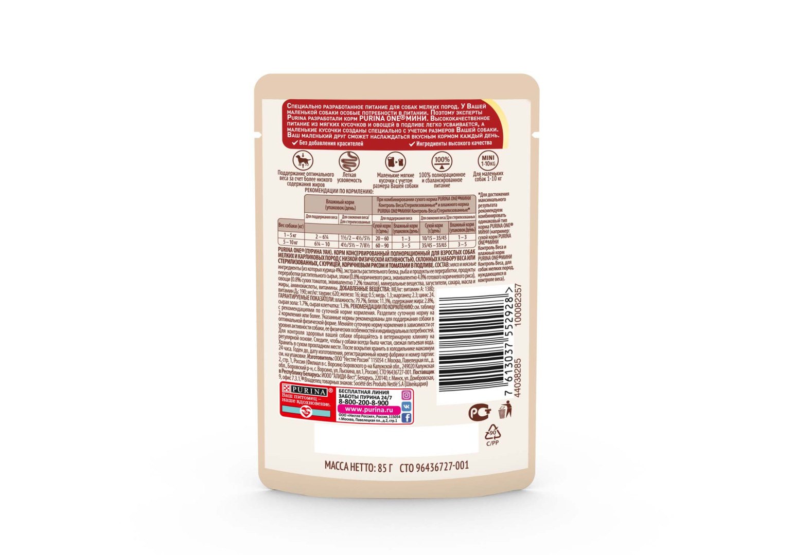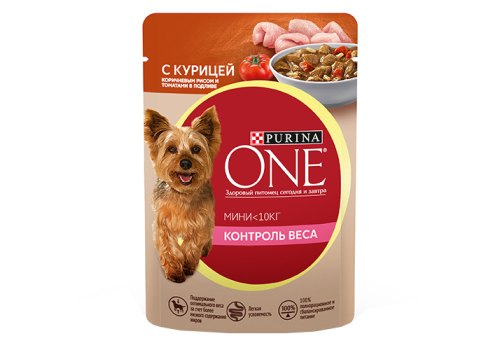 PURINA ONE MINI Влажный корм Паучи Пурина УАН для взрослых собак мелких пород при склоннности к набору веса с курицей (цена за упаковку) 85г х 26шт