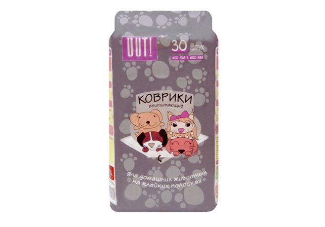 OUT! Впитывающие коврики Аут для домашних животных на Клейких полосках 400х600 мм 30шт