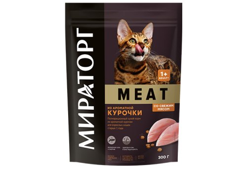 Мираторг Meat Сухой корм для взрослых кошек из ароматной Курочки 300 г