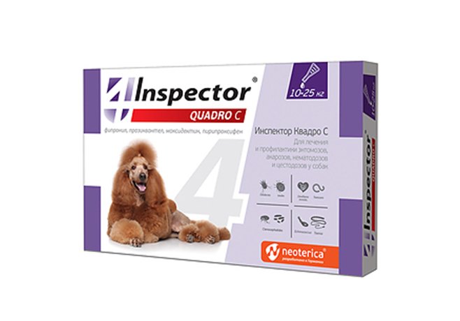 Inspector Quadro С Капли Инспектор от Внешних и Внутренних паразитов для собак весом от 10 до 25 кг 1 шт