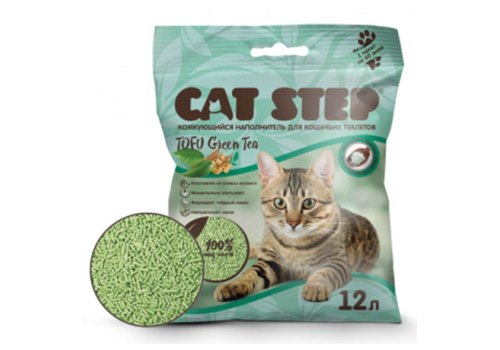 Cat Step Tofu Green Tea Комкующийся растительный наполнитель Кэт Степ для кошачьего туалета Зеленый чай 12 л (5,62 кг)