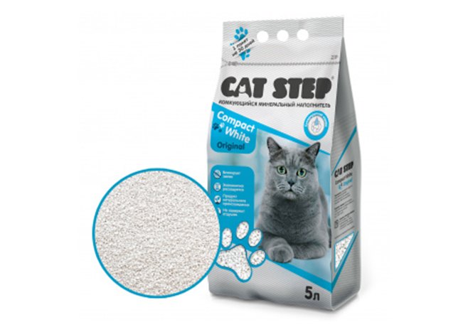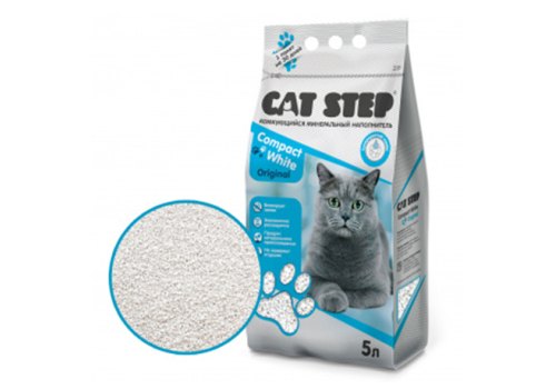 Cat Step Compact White Original Наполнитель Кэт Степ для кошачьего туалета комкующийся Минеральный 5 л (4,2 кг)