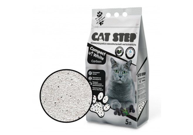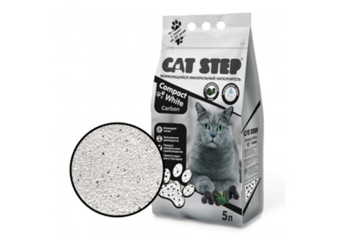 Cat Step Compact White Carbon Наполнитель Кэт Степ для кошачьего туалета комкующийся Минеральный с Активированным углем 5 л (4,2 кг)