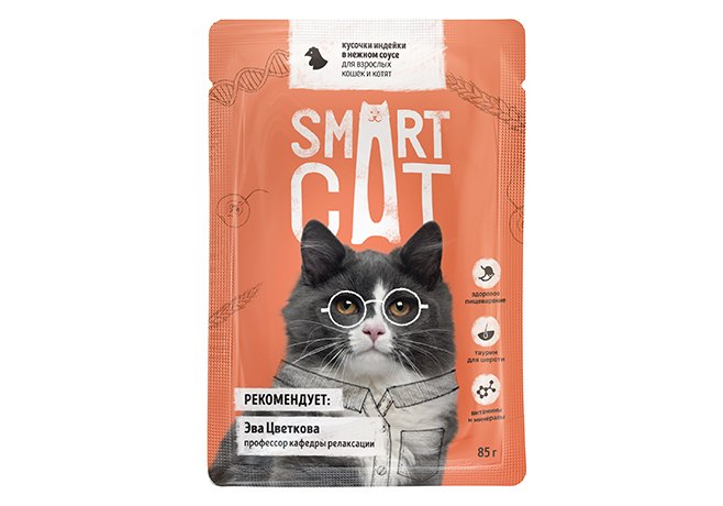 Smart Cat Паучи Смарт Кэт для Котят и взрослых кошек Индейка в нежном соусе (цена за упаковку) 85г х 25шт
