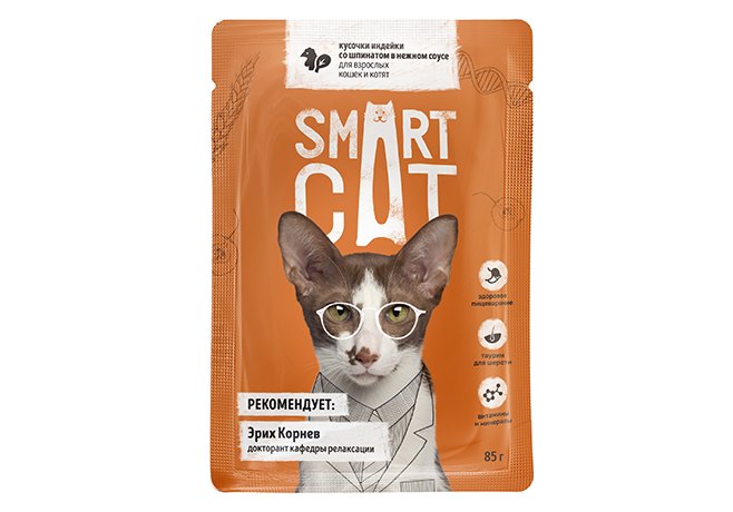 Smart Cat Паучи Смарт Кэт для Котят и взрослых кошек Индейка со шпинатом в нежном соусе (цена за упаковку 85г х 25шт
