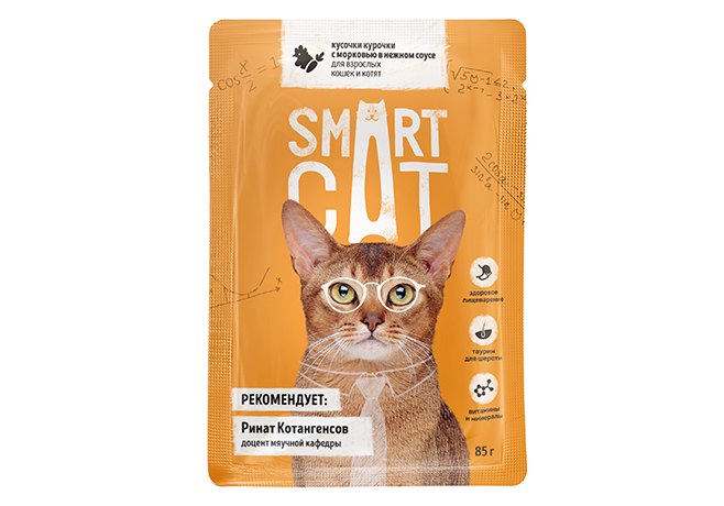 Smart Cat Паучи Смарт Кэт для Котят и взрослых кошек Курочка с морковью в нежном соусе (цена за упаковку) 85г х 25шт