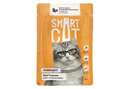 Smart Cat Паучи Смарт Кэт для Котят и взрослых кошек Курочка со шпинатом в нежном соусе (цена за упаковку) 85г х 25шт