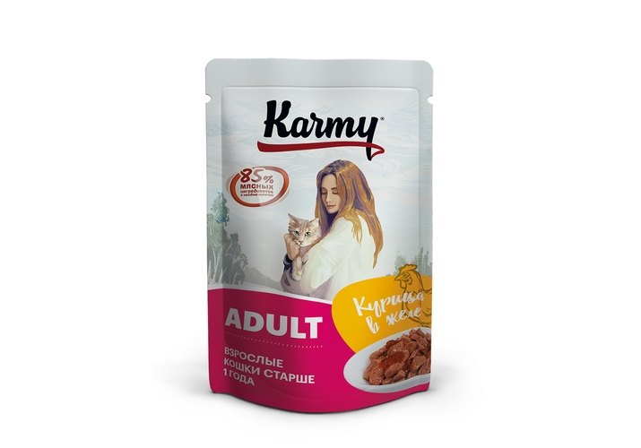 Karmy Adult Влажный корм Паучи Карми для взрослых кошек Курица в желе (цена за упаковку) 80г х 12шт