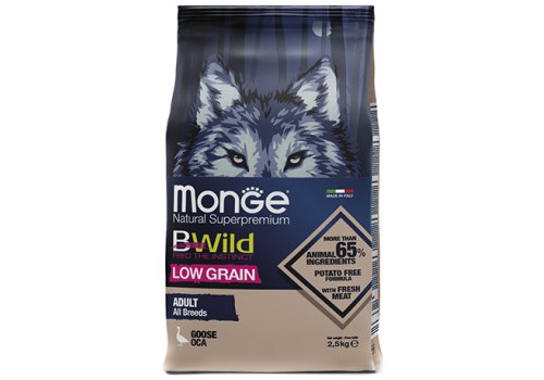 Monge Dog BWild Low Grain Adult All Breeds Goose Сухой Низкозерновой корм Монж Бивайлд для взрослых собак всех пород мясо Гуся 2,5 кг