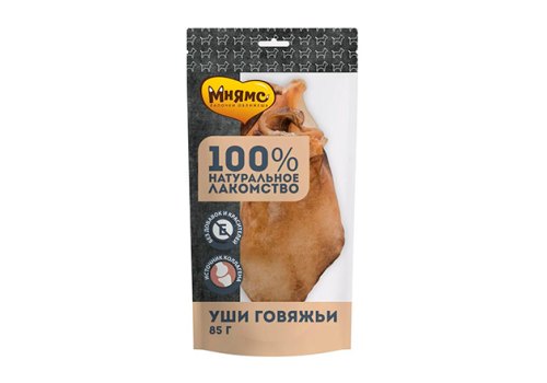 Мнямс 100% Натуральное лакомство для собак Уши Говяжьи 85 г