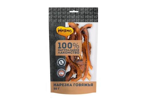 Мнямс 100% Натуральное лакомство для собак Нарезка Говяжья 50 г