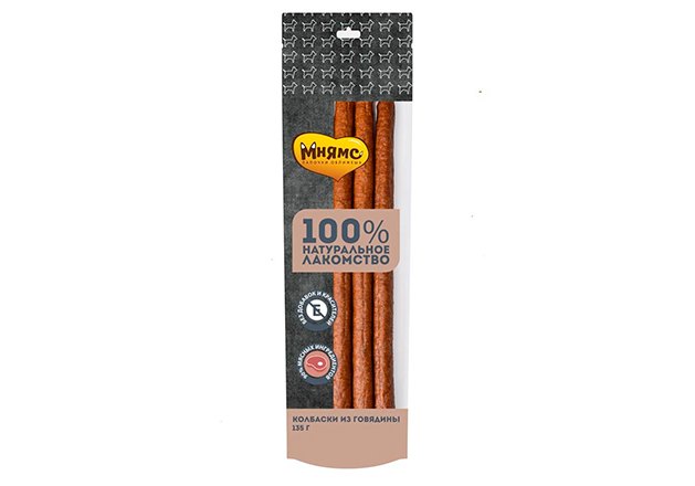 Мнямс 100% Натуральное лакомство для собак Колбаски из Говядины 135 г