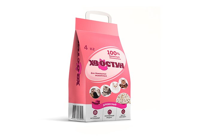 Хвостун Наполнитель для кошачьего туалета Древесный 4 кг