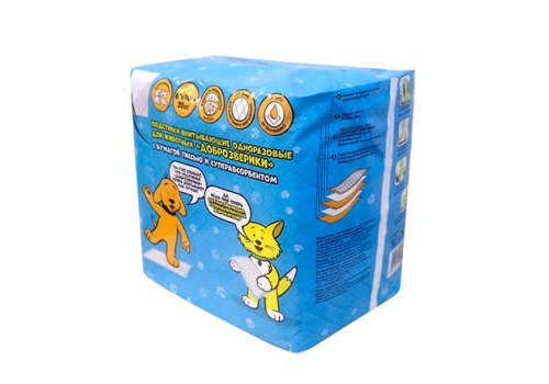 Доброзверики Подстилки впитывающие для животных с Бумагой Тиссью и Суперабсорбентом 20шт 60х40 см