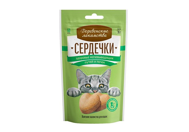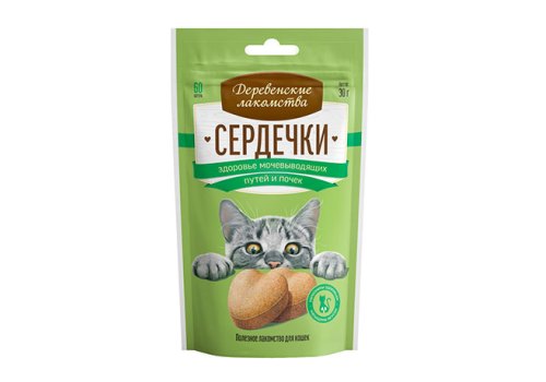 Деревенские лакомства Сердечки для кошек Здоровье Мочевыводящих путей и Почек 30 г