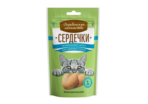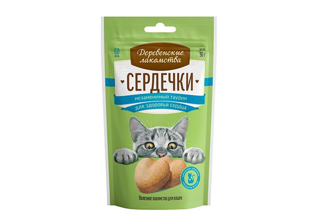 Деревенские лакомства Сердечки для кошек незаменимый Таурин для здоровья Сердца 30 г