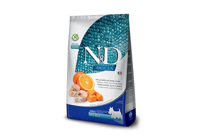 Farmina N&D Ocean Line Adult Mini Codfish Pumpkin Orange Сухой Беззерновой корм Фармина для взрослых собак Мелких пород Треска с Тыквой и Апельсином 2,5 кг