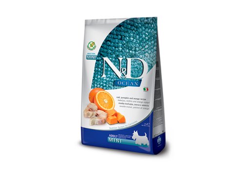 Farmina N&D Ocean Line Adult Mini Codfish Pumpkin Orange Сухой Беззерновой корм Фармина для взрослых собак Мелких пород Треска с Тыквой и Апельсином 7 кг