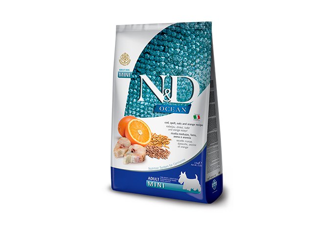 Farmina N&D Ocean Line Adult Mini Codfish Spelt Oats Orange Low Grain Сухой Низкозерновой корм Фармина для взрослых собак Мелких пород Треска с Пшеницей Овсом и Апельсином 7 кг