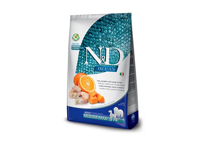Farmina N&D Ocean Line Adult Medium Maxi Codfish Pumpkin Orange Сухой Беззерновой корм Фармина для взрослых собак Средних и Крупных пород Треска с Тыквой и Апельсином 12 кг