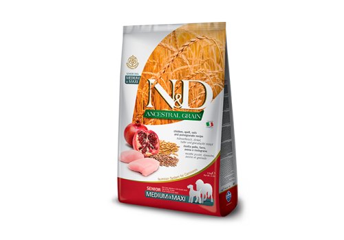 Farmina N&D Ancestral Grain Senior Medium Maxi Chicken Spelt Oats Pomegranate Сухой Низкозерновой корм Фармина для Пожилых собак Средних и Крупных пород Курица с Гранатом 2,5 кг
