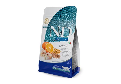 Farmina N&D Ocean Line Adult Condish Spelt Oats Orange Low Grain Сухой Низкозерновой корм Фармина для взрослых кошек Треска с Пшеницей Овсом и Апельсином 300 г